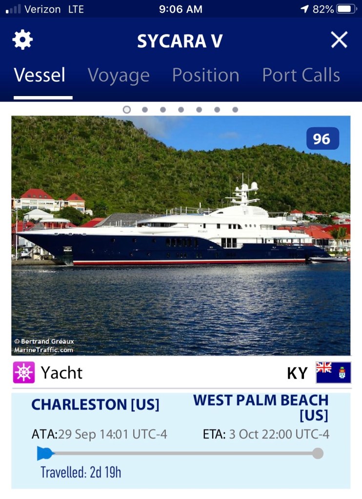 What got me into MarineTraffic, when not cruising? This past spring and summer, a number of yachts in excess of two hundred feet, visited the Charleston Harbor. From Mount Pleasant, I could see them anchored, but they were too far away to be identified. One afternoon while talking with a friend while our dogs played by the harbor, he asked if I had the MarineTraffic app on my phone. When I said yes, he asked why I wasn’t using it to identify the yachts. It was a “duh” moment! For a couple of years, the app had been sitting, unused, on my phone! With MarineTraffic, I can tell where the boat cast off from that day, its destination, speed in knots, the length in meters, and the flag of the country in which the boat is registered. If nothing else, the information is a great conversation starter on a quiet day.