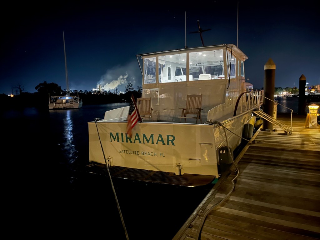 Last fall as I returned to Slow Dance from the showers at Harborwalk Marina in Georgetown, SC, I noticed a beautiful boat on the face dock. I knew I’d seen it or pictures of it before, but where? I walked straight to the face dock, and as soon as I saw the name “MIRAMAR” I knew it was the restored Huckins that I’d read about in Power and Motoryacht magazine!