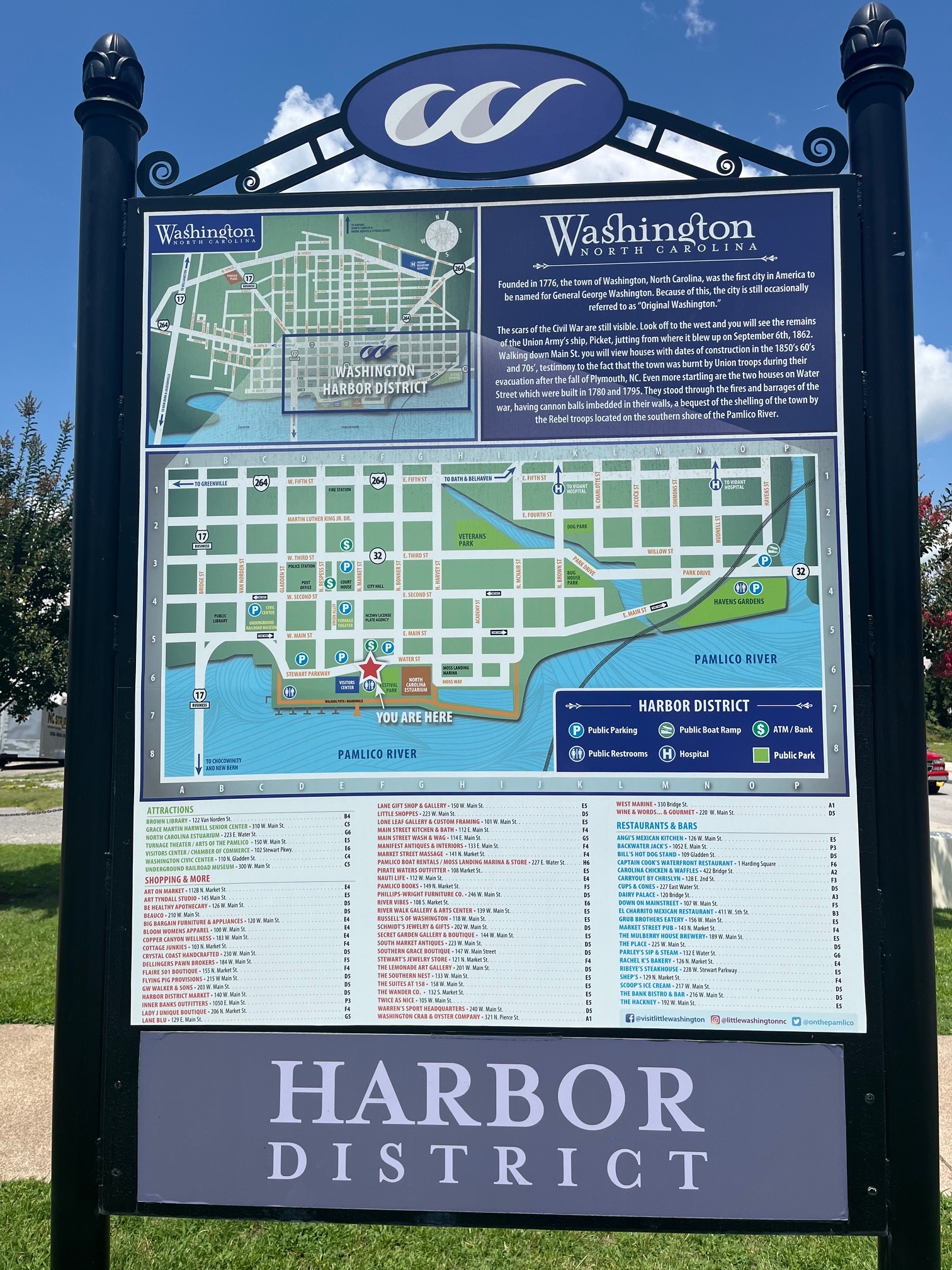 Little Washington, NC. Why the name, Little Washington? Because in 1776 it became the first town in America to be named in honor of General George Washington, making it the Original Washington. I have no doubt that General – or President – George Washington would be much prouder of the warm, friendly, and beautiful Original Washington than he would be of our nation’s capitol today. I’ll leave it at that.