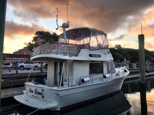 7:38AM, Thursday, July 5, 2018. After one birthday and four nights in Beaufort, it’s time to cruise at sunrise. Thanks for the memories, Beaufort, NC. See you next year.