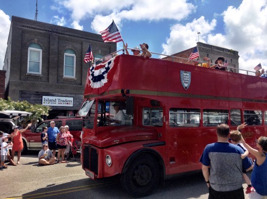 Talk about patriotism on Independence Day, how many communities across America actually host a parade! And how many American Independance Day parades include an old London Transportation Authority bus. Wonder if our British friends would see the irony?
