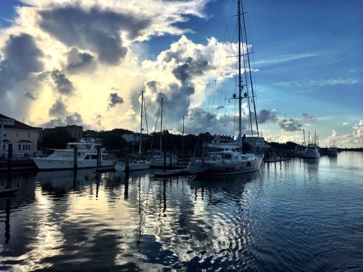 While dockside buildings block the actual sunrise at Beaufort Docks this time of year, the sun’s illumination of clouds over Taylor’s Creek and the ocean, can be stunning. And the same can be said about sunsets.