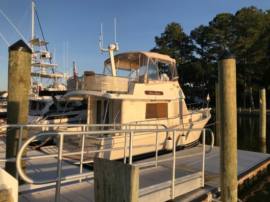 I’m writing this post from Bridge Marina, in Urbana, VA.  So far we have overnighted in Georgetown, Little River, Southport, Wrightsville Beach, Beaufort, Belhaven, Coinjock, Hampton, Cape Charles, Onancock, and Urbana.  In every port people in the marina have been amazed Slow Dance is a thirteen year old boat.  For that I give full credit to master detailer, David Vickers, owner of NAVY Details.