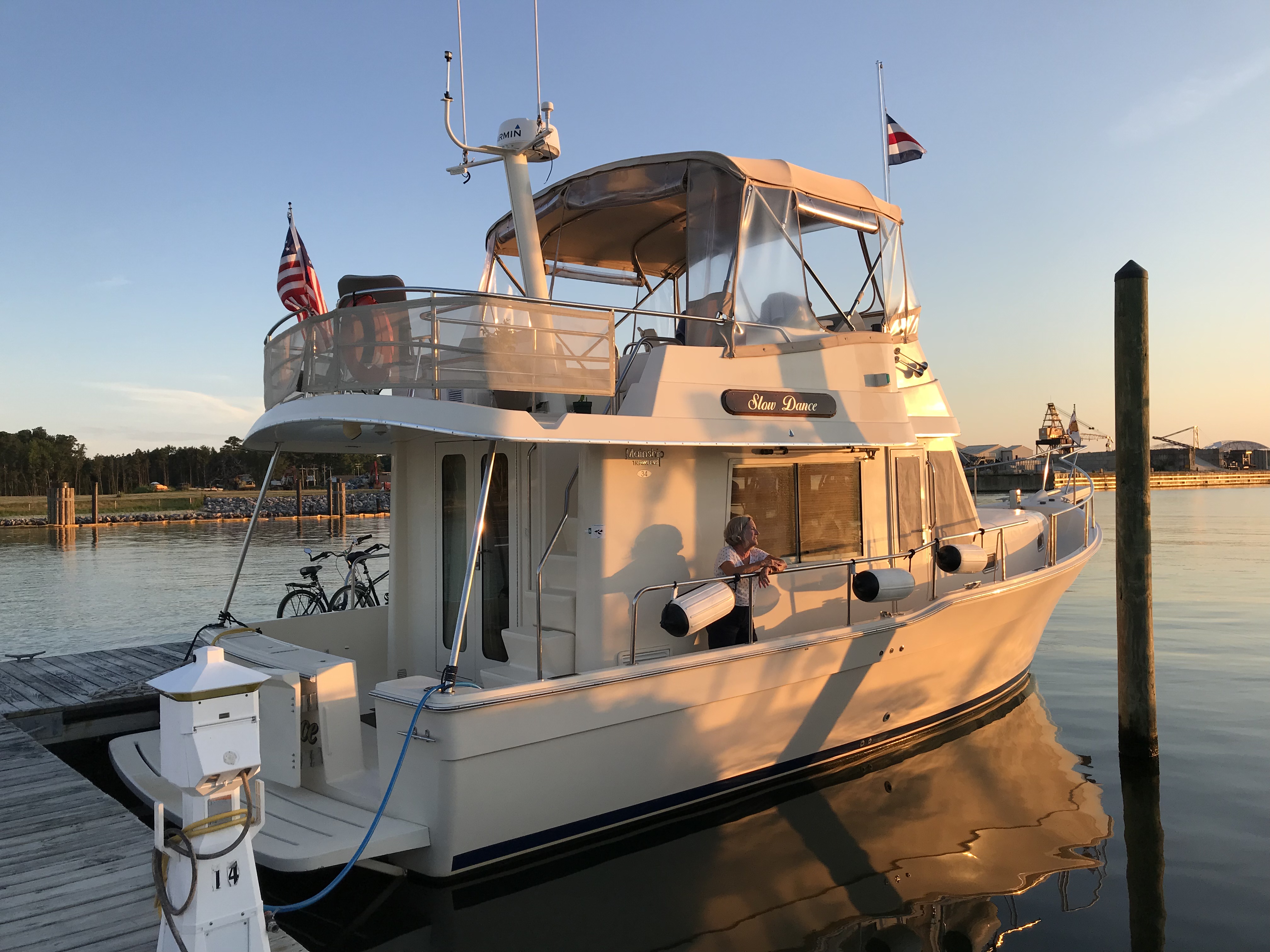 I’m writing this post from Bridge Marina, in Urbana, VA.  So far we have overnighted in Georgetown, Little River, Southport, Wrightsville Beach, Beaufort, Belhaven, Coinjock, Hampton, Cape Charles, Onancock, and Urbana.  In every port people in the marina have been amazed Slow Dance is a thirteen year old boat.  For that I give full credit to master detailer, David Vickers, owner of NAVY Details.