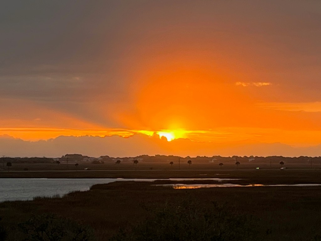 February 13, 2024 … When not cruising, I’m blessed the view from my writing room can be inspirational. It overlooks the marsh, Simmons Sound, the Sullivan’s Island causeway, Toler’s Cove Marina, and the waters of the Atlantic ICW that we love cruising. Architect Rush Dixon designed and positioned our home for every room to catch every sunrise of the year. Considering the chaos our country and world have experienced in recent years, the writing room is my place for thought, solitude, and reflection. Starting the day by capturing God’s art, has proven a wonderful way to start the day. Sunrises are like sunsets, no two are exactly alike. I hope these few brighten your day.